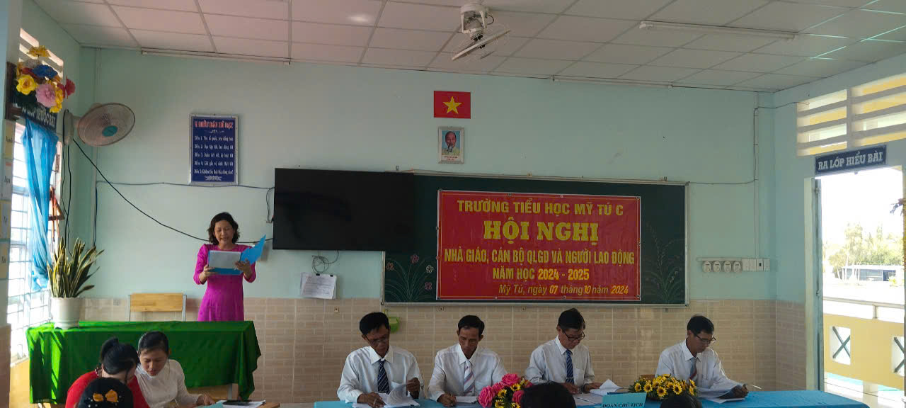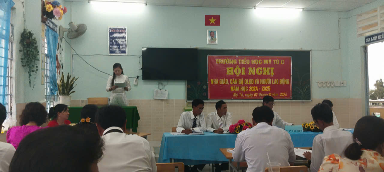 Chiều ngày 7 tháng 10 năm 2024 Trường Tiểu học Mỹ Tú C tổ chức hội nghị nhà giáo và người lao động gồm tập thể cán bộ giáo viên công nhân viên của trường