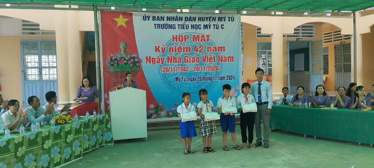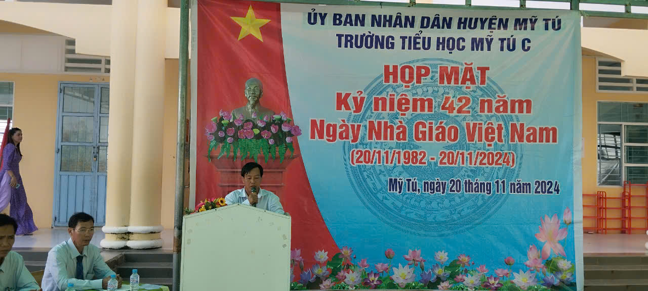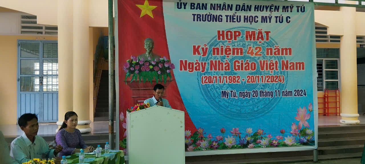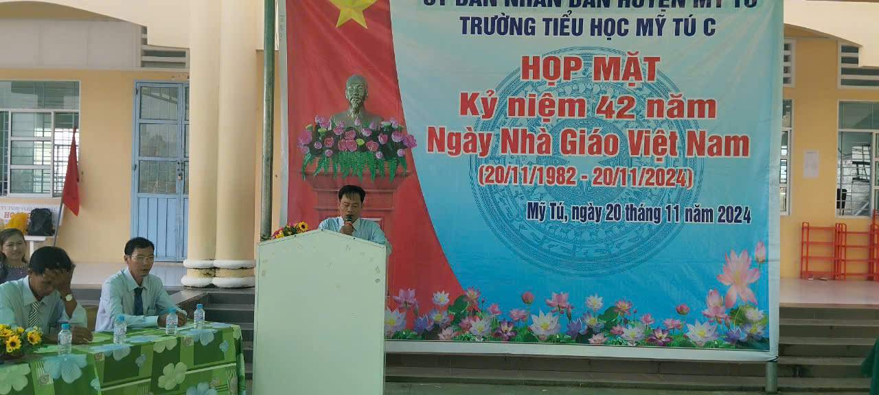 Sáng ngày 20 tháng 11 năm 2024 Trường Tiểu học mỹ Tú C rổ chức họp mặt nhà giáo tại điểm chính mỹ bình đến dự có đ/c Đinh Thành Biển UV thường vụ đảng uỷ chủ tịch uỷ ban mặt trận tổ quốc Việt nam xã