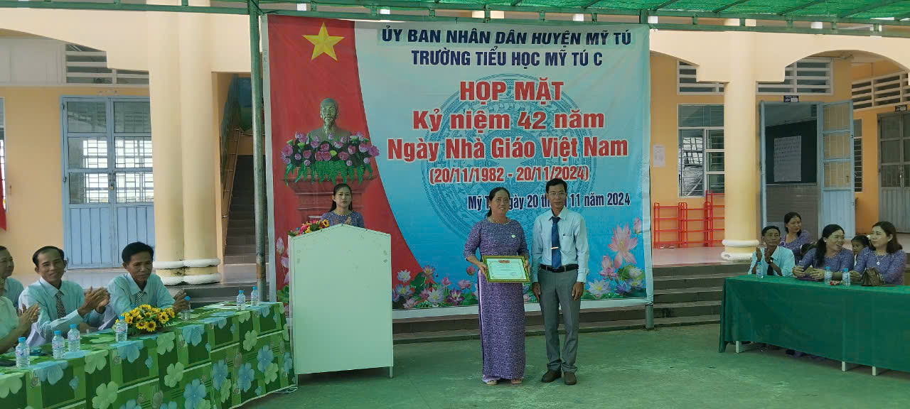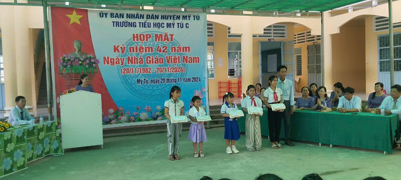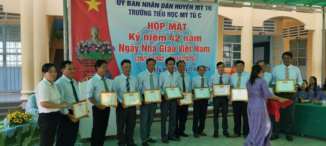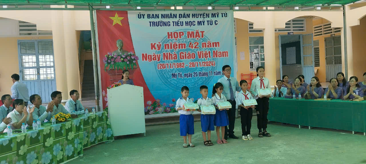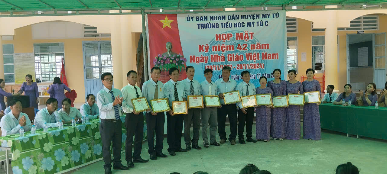 Sáng ngày 20 tháng 11 năm 2024 Trường Tiểu học mỹ Tú C rổ chức họp mặt nhà giáo tại điểm chính mỹ bình đến dự có đ/c Đinh Thành Biển UV thường vụ đảng uỷ chủ tịch uỷ ban mặt trận tổ quốc Việt nam xã