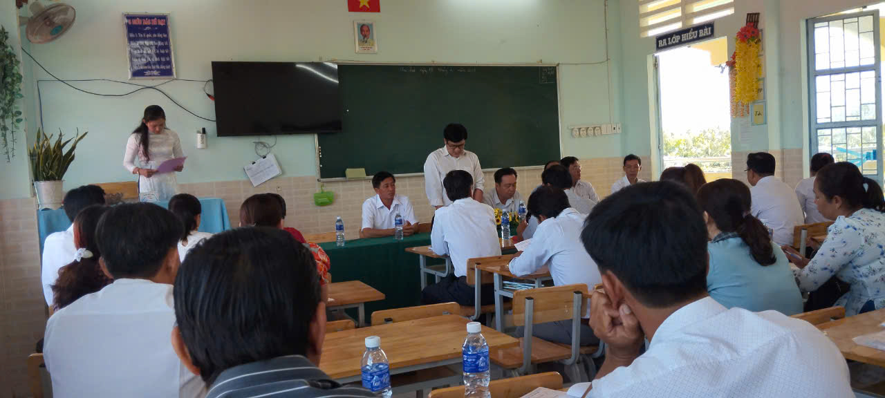 Ngày 17-2-2025 Phòng GD&ĐT và Phòng nội vụ lấy ý kiến tập thể CBGV về việc bổ nhiệm lại Hiệu trưởng đối với Thầy Lê Long Đảnh