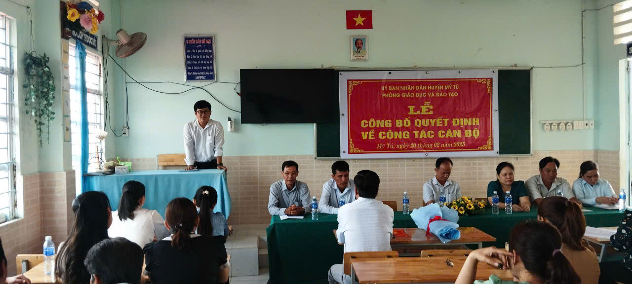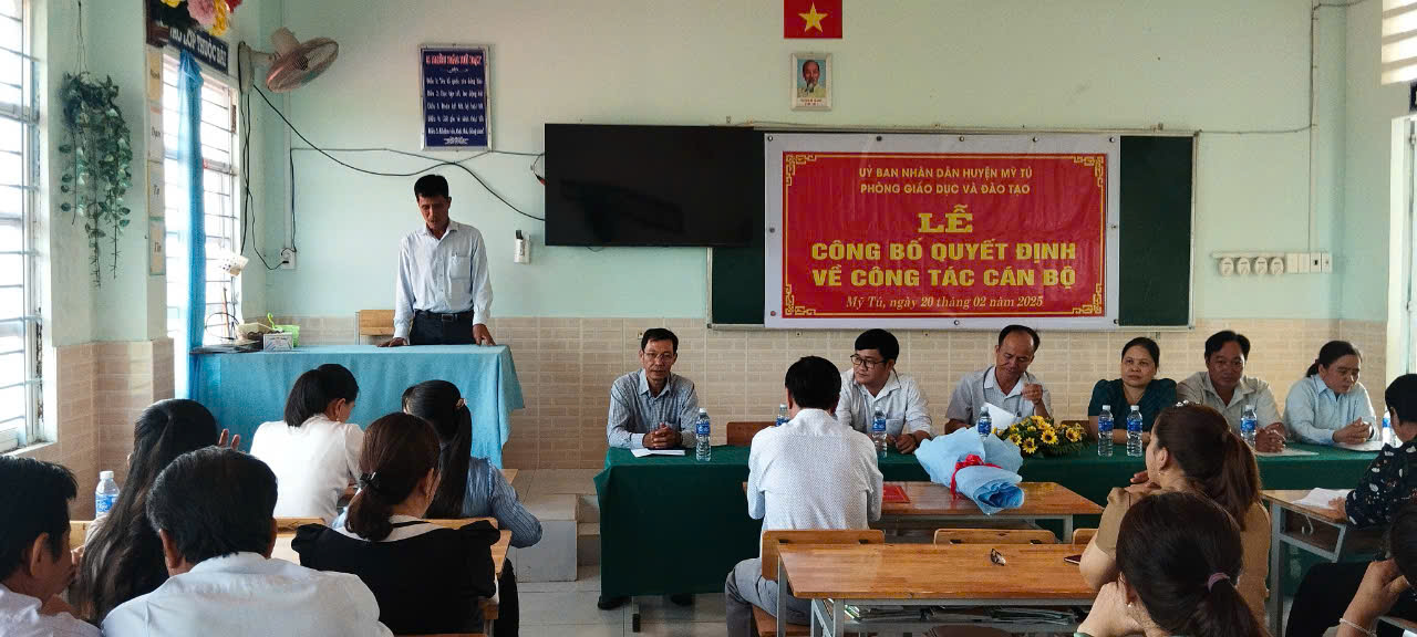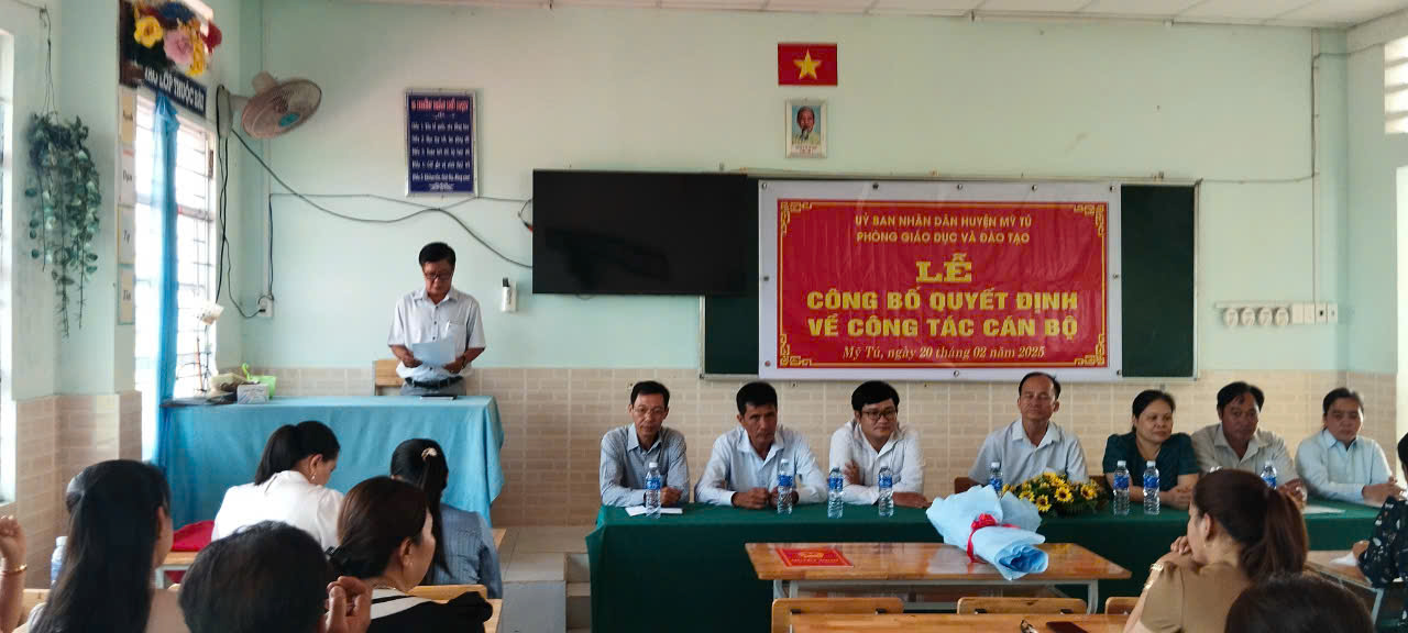 Sáng ngày 20-2-2025 PGD và Phòng nội vụ tổ chức buổi lễ trao quyết định bổ nhiệm Hiệu trưởng đối với thầy Lê Long Đảnh