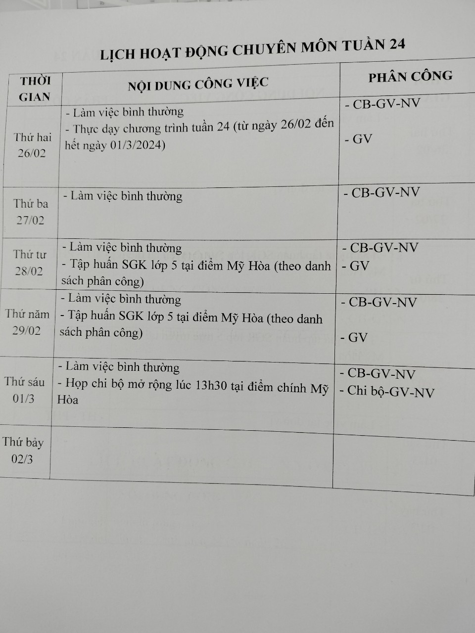 KẾ HOẠCH TUẦN 24/2024