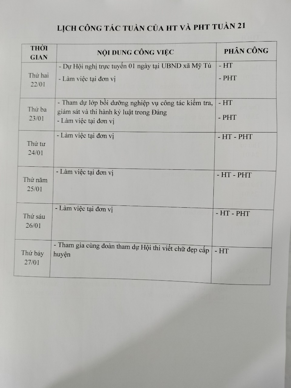 Lịch công tác tuần 21/2024