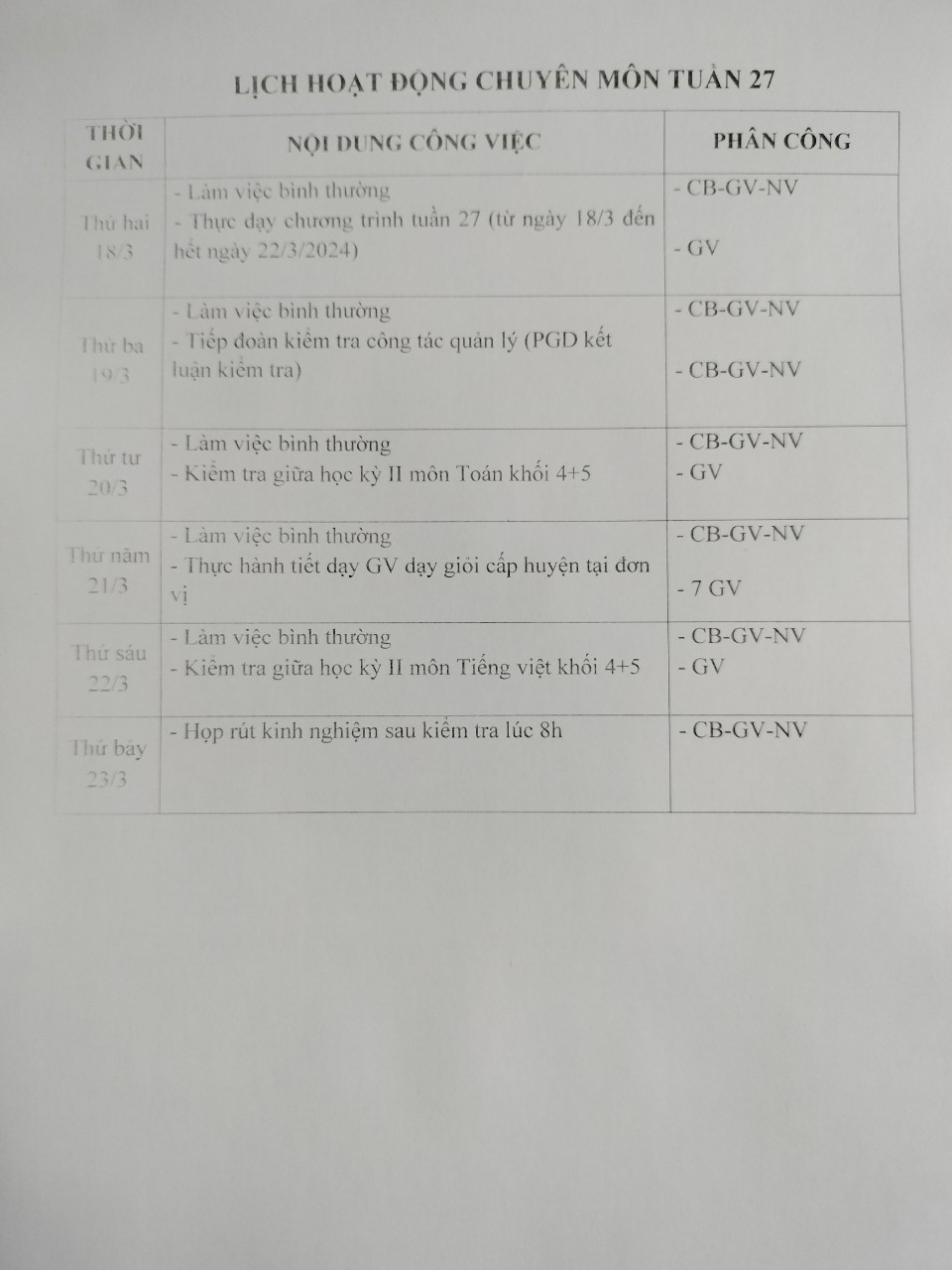 Lịch công tác tuần 27/2024
